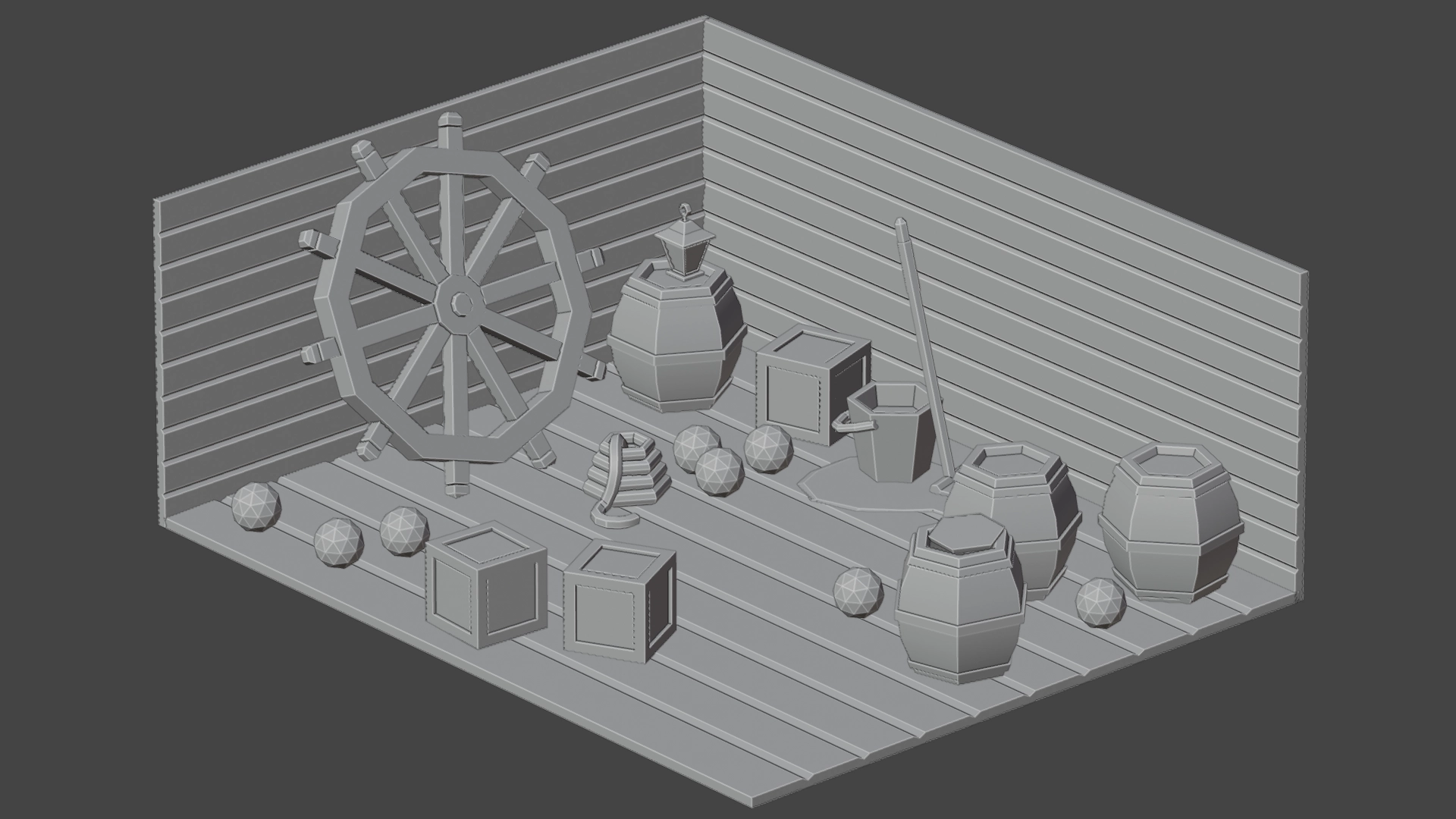 This work is a 3D model pirate kit for a school assignment. In this assignment I learned how to add simple textures onto objects and how to assign them onto specific faces. Making the water texture was challenging at first, then I realized that I don’t have to make the water texture transparent.